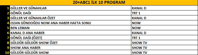 ABC1 REYTİNG SONUÇLARI
