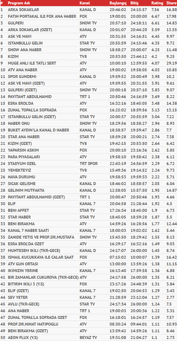 2 KASIM CUMA TOTAL REYTİNGLERİ