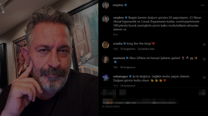 Ünlü komedyen ve oyuncu Cem Yılmaz 50 yaşına bastı. 23 Nisan 1973 tarihinde dünyaya gözlerini açan Cem Yılmaz Türk bayraklı paylaşımıyla gönülleri fethetti.Paylaşımının altına "Bugün benim doğum günüm.50 yaşındayım.23 Nisan Ulusal Egemenlik ve Çocuk Bayramınızı kutlar, Cumhuriyetimizin 100. yılında buruk sevinçlerin yerini kalıcı mutlulukların almasını dilerim" yazan Cem Yılmaz’ın paylaşımına kısa zamanda yüzbinlerce beğeni ve pek çok yorum geldi..jpg)