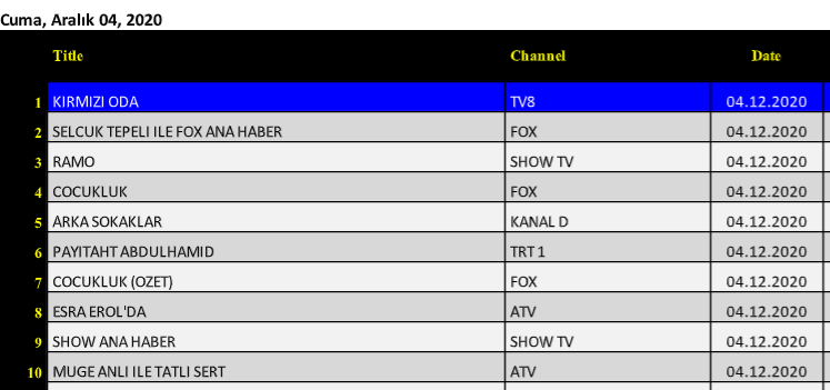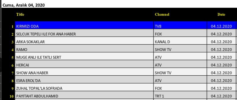 4 Aralık 2020 Cuma Reyting Sonuçları