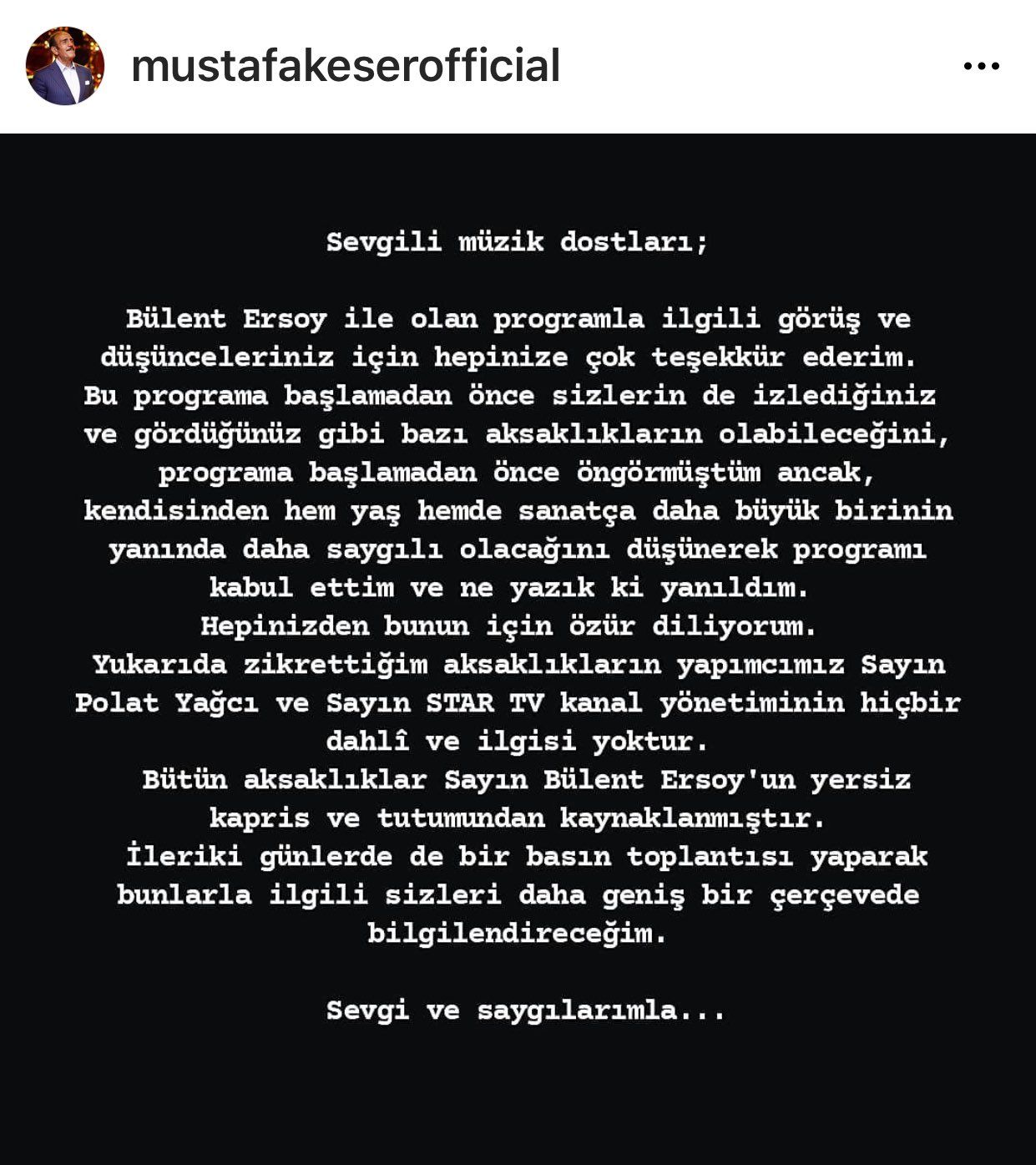 Mustafa Keser’den Bülent Ersoy’a Sitem