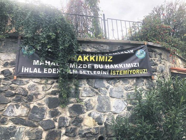 Yapım ekibine dava açan mahalle sakinleri olay sonrası sokağın girişine bir pankart astı. "Huzur, düzen, temizlik hakkımız. Mahallemizde hakkımızı ihlal eden dizi setlerini istemiyoruz" yazılı pankart bakalım nasıl bir sonuç verecek?