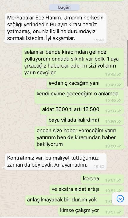 İşte Ece Erken ve ev sahibi arasındaki o yazışma: