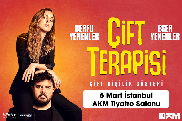 Deprem yararına pek çok etkinlik, konser, gösteri gelirleri deprem bölgesine bağışlanıyor. Bunlardan biri de ünlü oyuncu ve sunucu Eser Yenenler ve eşi Berfu Yenenler çifti. BKM organizasyonuyla devam eden Çifte Terapi gösterilerine deprem nedeniyle ara vermişlerdi. Gösterileri başlayan çift yaptıkları gösteri ve 6 Mart Pazartesi günü İstanbul AKM Tiyatro Salonu’ nda gerçekleştirecekleri Çifte Terapi gösteri gelirlerini deprem bölgesine bağışlıyorlar..jpg)