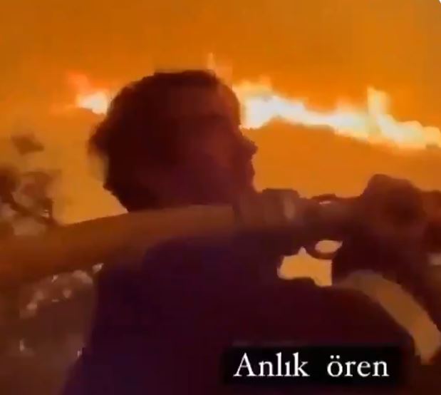 Akdeniz ve Ege bölgesinde yaşanan yangınlarda herkes teyakkuz halinde. Şahan Gökbakar, Haluk Levent, Alperen Duymaz, İbrahim Çelikkol gibi ünlü isimler hem yardım kampanyaları hem de bireysel mücadeleleriyle insanlara yardımcı olmaya çalışıyor. Bölgede birçok orman alanının yok olması ve yangınların yerleşim yerlerine sıçraması üzüntüyle izlenirken havadan ve karadan mücadele devam ediyor. Ünlü isimlerin de katıldığı yangınla mücadele anları ise sosyal medya hesaplarından paylaşılıyor. En son İbrahim Çelikkol'un görüntüleri geldi. İbrahim Çelikkol omuzladığı itfaiye hortumuyla Ören'de büyüyen yangına müdahale etti. Alevlerle bire bir mücadele eden Çelikkol'un bu davranışı birçok kişi tarafından takdirle karşılandı.