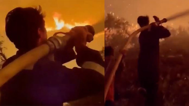 İbrahim Çelikkol itfaiye hortumuyla alevlere müdahale etti