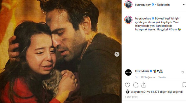 Dizinin ana karakterlerinden biri Demir'e hayat veren başarılı oyuncu Buğra Gülsoy ise: "Böylesi ‘özel’ bir işin içinde yer almak çok keyifliydi. Yeni hikayelerde yeni karakterlerde buluşmak üzere.. Hoşçakal Kızım.'' diyerek projesine veda etti.