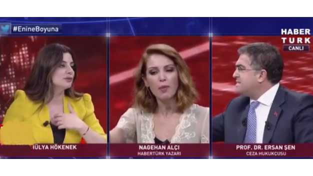 Habertürk Tv’de yayınlanan Enine Boyuna programı seyreden seyirciler dün akşam sert sözlere ve kavgalara şahit oldu. Program Suriye’de kurulması planlanan Güvenli Bölge konusu tartışılırken bir anda konuklardan Gazeteci Nagehan Alçı ve Ceza Hukukçusu Ersan şen arasındaki tartışmaya döndü. Ceza Hukukçusu Prof. Dr. Ersan Şen’in Suriye’de güvenli bölge oluşturulduktan sonra Suriyelilerin anında gönderilmesi gerektiğini söylemesi üzerine Habertürk yazarı gazeteci Nagehan Alçı araya girdi. Bu sırada Ersan şen Nagehan Alçı’ya “boş konuşuyorsunuz” dedi. Bu ifadelerin ardından Nagehan alçı oldukça sinirlendi ve ikili arasında tartışma iyice şiddetlendi.