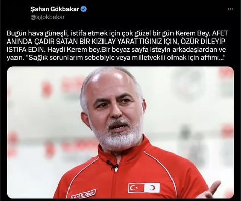 Kızılay’ın deprem günlerinde Ahbap başta olmak üzere birçok şirket, dernek ve vakıfa çadır satması büyük infial uyandırdı. Ülke ayağa kalktı günlerce, haftalarca bu konu gündemden düşmedi . Bu konunun peşini bırakmayan ünlü oyuncu Şahan Gökpınar sosyal medya hesabından Kızılay Başkanı Kerem Kınık ‘ın resmini paylaşıp “"Seni unuttum zannetme yakışıklı. Babaaaam, dedeeeeem, ögretim görevlim, afette çadır ve konserve satanım...." ifadelerini kullandı.