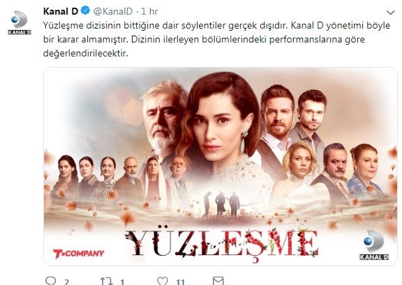 "Yüzleşme dizisinin bittiğine dair söyletinler gerçek dışıdır. Kanal D yönetimi böyle bir karar almamıştır. Dizinin ilerleyen bölümlerindeki performanslarına göre değerlendirilecektir."